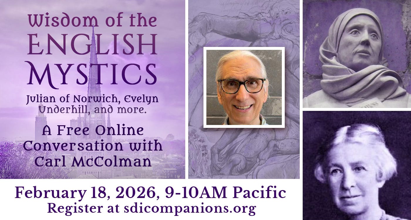 Would you like to explore the spirituality of Julian of Norwich (and other mystics from England) more fully? Then please join me for a conversation on the Wisdom of the English Mystics, this coming Wednesday, February 18, 2025, at 9 AM Pacific Time / Noon Eastern Time (USA). To register for this free event, click here: www.sdicompanions.org/event/the-wisdom-of-the-english-mystics/