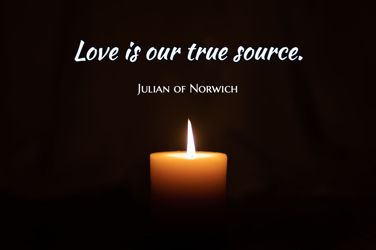 We are made, we are loved, we are kept (sustained). Whatever you may believe about God, Julian invites you to consider that these are the three facts that shape the relationship between divinity and humanity. What Julian called “God” we can call “Divine Love” which follows the teaching from the first letter of John in the New Testament: “God is love” (I John 4:8, 4:16). Interestingly, it’s the only time any of the Biblical writers attempts to offer such a succinct definition of God. We may speak of the creator of the universe as Divine Love, for Love truly is the creator. And this Love that creates us, that gives us our very being, also sustains us: keeps us. And it is all woven together and held together in love.