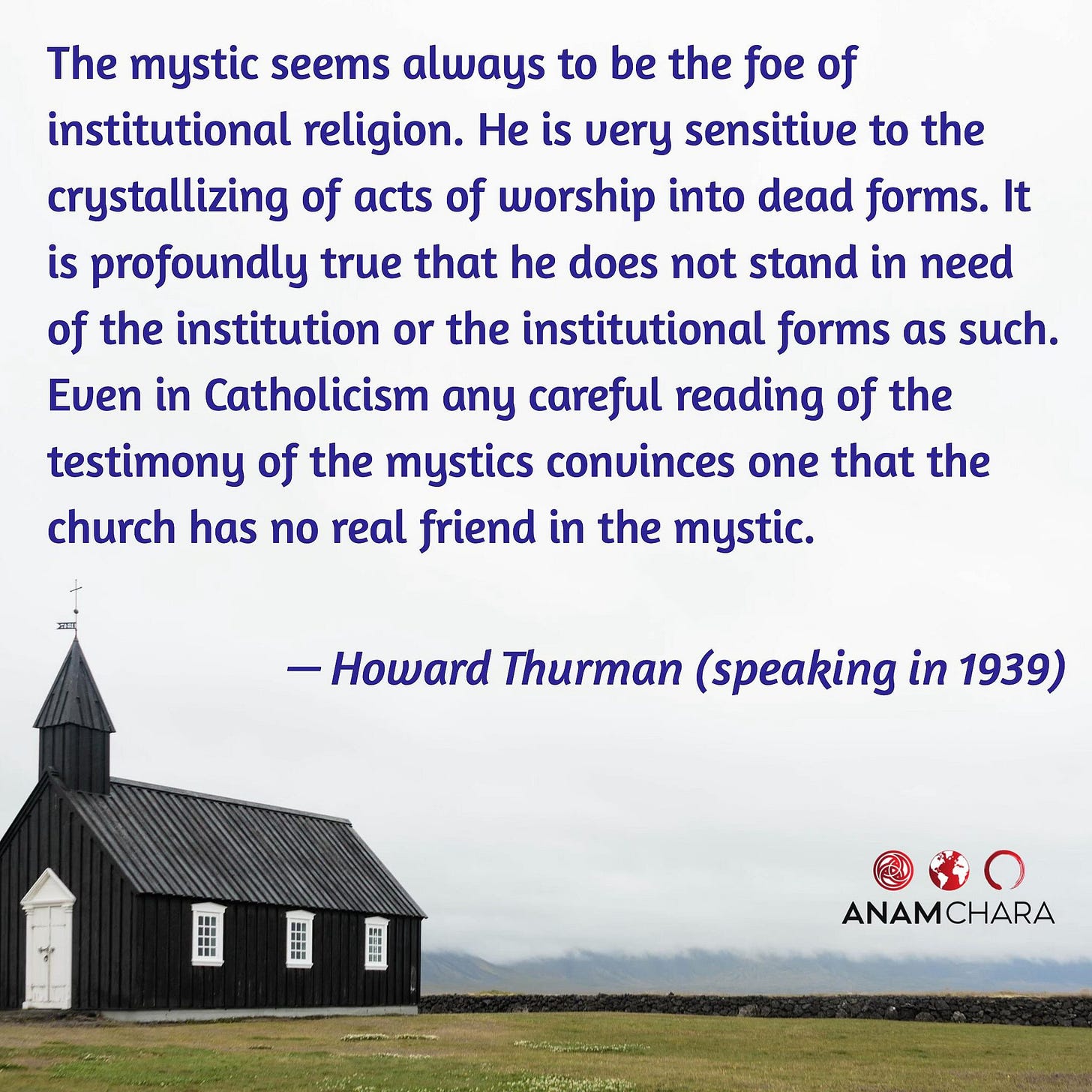 Now, like Howard Thurman, many mystics throughout history remained active in their faith communities. You can bet that any mystic who has been declared a saint by the Catholic Church generally had a track record of remaining embedded in their churches. But mystics who remain in churches often do so because they see the church as a place where they serve others, often in spite of the dysfunction of the church.