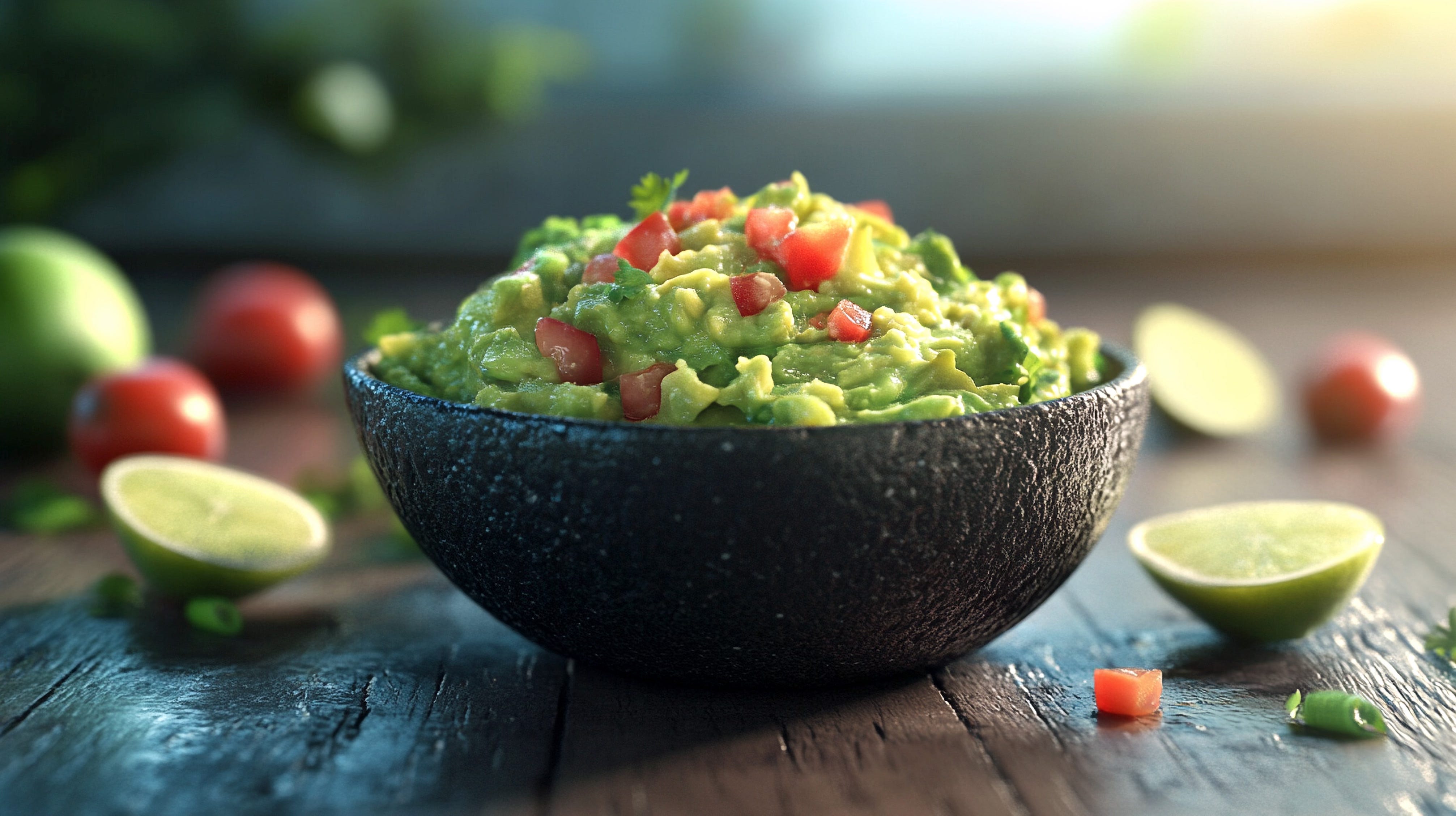 Now everyone knows that guacamole is a lot more than just a mashed up avocado, even though that is its main ingredient. But to have really good guac, you need to blend that mashed up avocado with lime juice and salt, plus other ingredients like diced onions, peppers, salt, tomatoes, cilantro and just a hint of garlic. Mmmm! My mouth is watering just thinking about it.