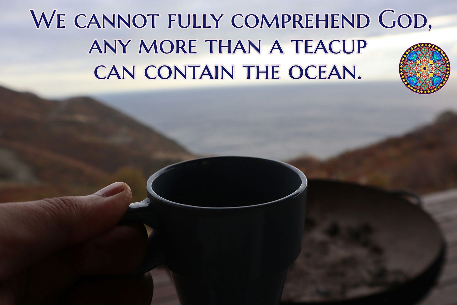 In my experience, it does seem that fundamentalists tend to hold a personalist image of God — but it’s also my experience that some people grow beyond fundamentalism and yet still find meaning and intimacy in relating to God in a personified way (like my friend the seminary professor). Maybe the important lesson here is simply “do not judge” — let other people relate to God in the manner that works for them, and our job is simply to concentrate on discovering the best image of God that works for ourselves. Remembering, always, that our teacups just can’t hold the entire ocean.